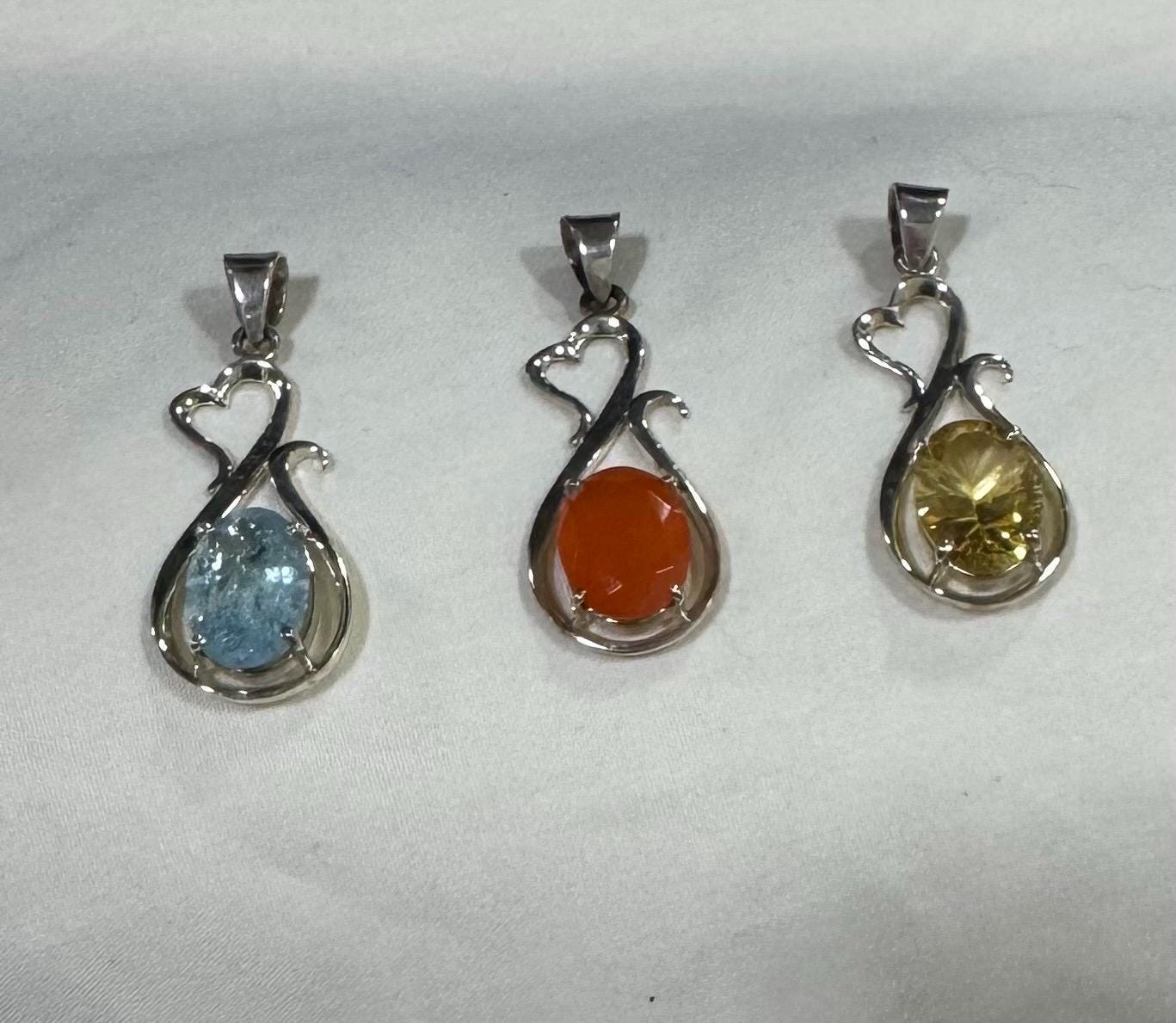 Sterling silver set with either: carnelian, blue topaz, moonstone, citrine or amethyst.